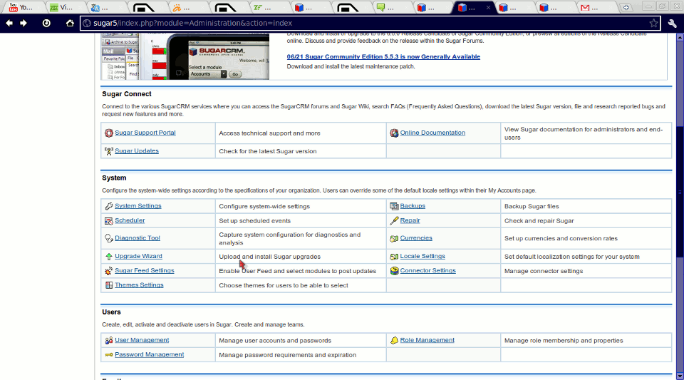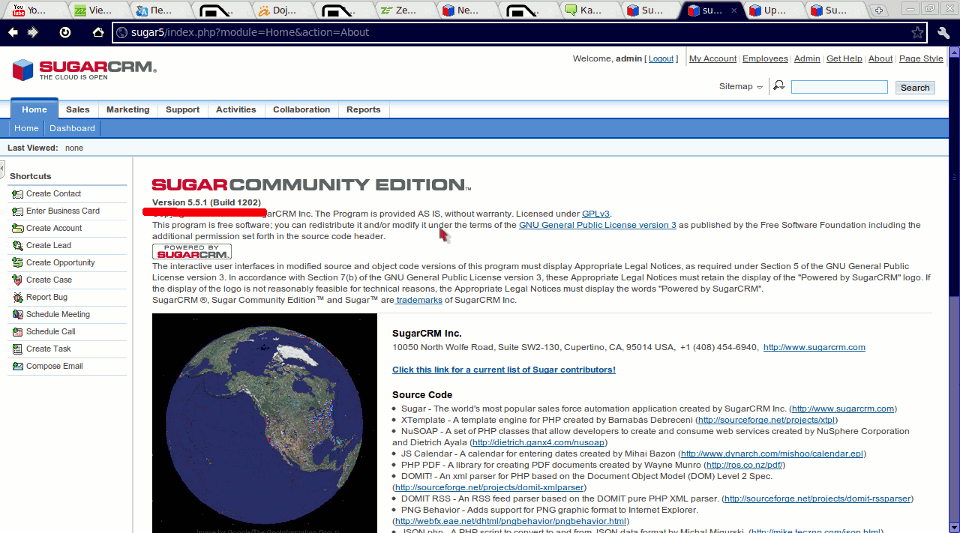 Для начала я скачал и установил SugarCRM CE Version 5.5.1.